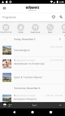Odkryj Alpenresort Schwarz, luksusowy resort w Mieming, Tyrol. Aplikacja prezentuje jego wizję, tworząc przestrzeń do spotkań, dobrego samopoczucia i rozwoju. Znajdź całoroczne atrakcje: od letnich wędrówek i rowerowych wycieczek po zimowe safari narciarskie. Poznaj sąsiadujące 27-dołkowe pole golfowe i ciesz się niezapomnianym pobytem, wypełnionym bogactwem możliwości.