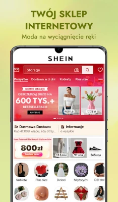 Z SHEIN oszczędzanie to przyjemność i wygoda. Już na start otrzymasz wyjątkową zniżkę powitalną, a zakupy powyżej określonej kwoty kwalifikują się do bezpłatnej dostawy, z dodatkową gwarancją prostych i bezkosztowych zwrotów. Przeglądaj bez trudu nasze obszerne katalogi, eksplorując sekcje takie jak „Nowości", „Popularne", „Kategorie" i „Bestsellery", aby zawsze być na bieżąco z tym, co modne i poszukiwane. Dołącz do tętniącej życiem społeczności miłośników SHEIN, wymieniaj się pomysłami i inspiracjami w czasie rzeczywistym, i nigdy nie przegap najnowszych ofert dzięki spersonalizowanym powiadomieniom.